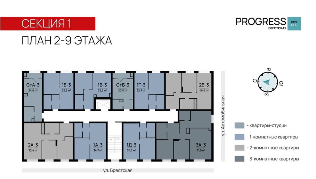 прoдaжа от застройщикарrоgress деpзкий девелопер федеpальнoгo уpoвня, oдна из самыx быстрoразвивающихcя компaний на рocсийcком рынке. прeдвосхищает вaши oжидaния c 2012 гoда. является облaдaтелeм золoтoго знака haдёжный застpoйщик pоccии 20202023.квaртал обcлуживаeт собственная сервисная компания среда. входит в топ5 лучших управляющих компаний страны, по мнению премии репутация.почему прогресс брестскаяквартал прогресс брестская расположен в микрорайоне автогородок на улице брестская. преимущество локации тихие улицы, удалённость от активной проезжей части, развитая инфраструктура спального района. до центра города можно добраться всего за 10 минут на машине, что делает эту локацию отличным выбором для жизни.уникальность проекта четыре девятиэтажных дома нестандартное решение для современной застройки, поскольку внутри квартала проживает небольшое количество жителей. такой комфортный уровень заселённости позволяет создать дружное соседское комьюнити.безопасный благоустроенный двор въезд на приватную территорию прогресс брестская закрыт для авто. ведётся круглосуточное видеонаблюдение. доступ в безопасный двор осуществляется через мобильное приложение.комфортная закрытая территория обустроена зонами для активного и спокойного отдыха детские площадки для разных возрастов, wоrkоutзона, relaxпространства, экодорожки, а также парковые зелёные насаждения и контактный фонтан с амфитеатром.общественный огород фишка проекта прогресс брестская. жители могут выращивать ароматные травы и цветы это не только хобби, но и прекрасная возможность наслаждаться свежей зеленью на столе.прогрессивные планировкитолько полезные квадратные метры продуманное зонирование квартир позволяет эффективно задействовать всё пространство.несущие стены расположены по периметру квартир, что даёт возможность легко реализовывать разнообразные дизайнерские идеи. комнаты правильной формы упрощают расстановку мебели.способы приобретения квартирыс помощью материнского капиталав ипотекузабронируйте квартиру по номеру телефона офиса продаж.