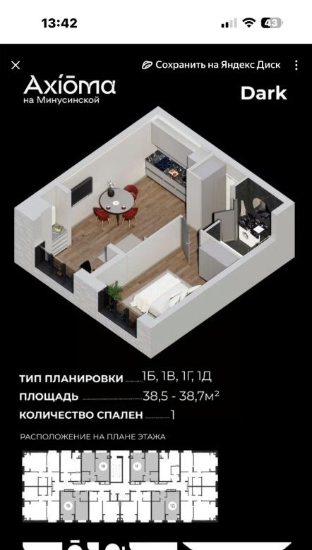 Продается однокомнатная квартира