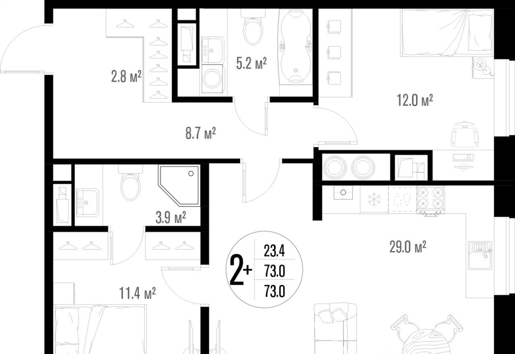 73 м²