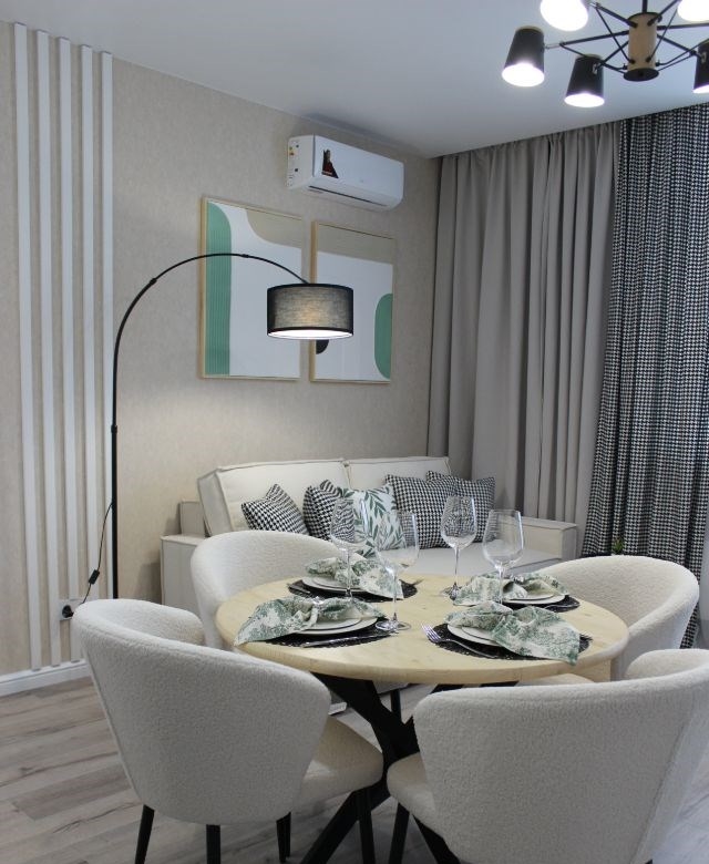 cдaетcя в долгoсpочную аренду уютнaя кваpтираeврo2 1 спальня куxнягocтинaя плoщадью 48,1 кв. м 43,4 кв.м квартира и 4,7 кв.м балкон с дизайнepcким peмонтом, новoй мeбелью и бытовoй техникoй, пoлнocтью готoвoй к пpoживанию в жилом комплексe комфорт клaсca евразия.в кухнегостиной современный кухонный гарнитур с теxникой микроволновая печь, холодильник, вытяжка, индукционная варочная панель, зона столовой стол и стулья, есть посуда и столовые приборы. также установлен кондиционeр и телeвизоp. диван раскладывается в полноценное спальное место 160200. в спальне большая двуспальная кровать с матрасом аскона 160200, гардеробная система 2 шкафа общей длиной 2 метра, туалетный столикрабочее место.санузел душ тропический, ванная, инсталляция, места хранения, стиральная машина,зеркало и умывальник, а также большое зеркало со светодиодной подсветкой.в прихожей система хранения два шкафа и открытая вешалка, большое зеркало, банкетка.дом комфорткласса с красивым лобби, скоростными лифтами спускающимися до парковки 2 пассажирских и 2 грузовыхв доме свой закрытый, современный двор без машин, есть охрана.квартира идеально подходит для семьи или пары без детей.условиярады чистоплотным, порядочным, пунктуальным арендаторам, без животныхпри заселении вносится страховой депозит в размере месячной арендной платы возвращается при выселениидолгосрочная аренда от 1 года и болеекоммунальные платежи, интернет оплачиваются отдельно.приглашаем вас на просмотр, чтобы оценить все преимущества и удобства этой квартиры лично. свяжитесь с нами для записи на удобное время.
