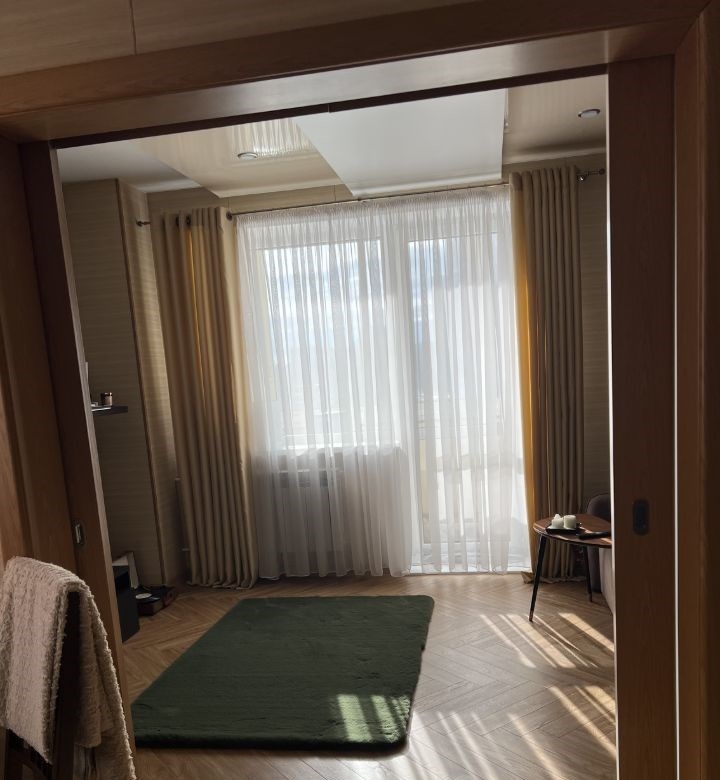 уютная квартира, сдается впервые. квартира полностью оборудована современной бытовой техникой, теплый пол и водонагреватель в ванной, кондиционер.отдельная гардеробная комната. качественная мебель. во дворе есть охраняемая парковка шлагбаум. к сдаче готова с 06.04.26. напрямую от собственника.