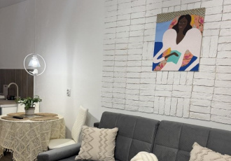 новая стильная, светлая, теплая, уютная квартира с огромными окнами и высокими потолками. в квартире имеется кухонный гарнитур, вытяжка, электрическая панель, стиральная машина, холодильник, огромная светлая гардеробная. в спальне большой шкаф и...