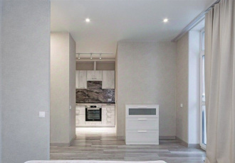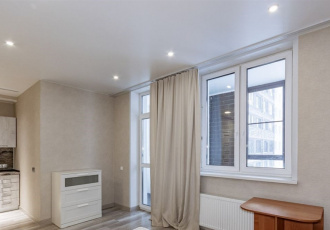 в продаже светлая уютная студия в районе солнечный по улице чемпионов квартира общая площадь по фактическим замерам 29,2 м2 этаж 4 из 9 в квартире выполнен современный ремонт высота потолков 2,7 м счетчики гвс, хвс , электричество, отопление сейф...