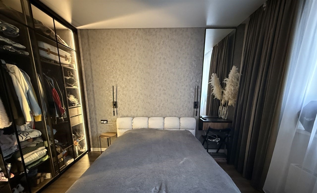 продается прекрасная квартира на 24 этаже с видом на ботанический сад в современном жилом комплексе евразия. дом расположен в удобной локации, рядом есть все, отличная транспортная развязка. в квартире сделан очень качественный современный ремонт по дизайн проекту с использованием дорогостоящих материалов. 1. прихожаявстроенный большой шкаф в прихожей, сейфдверь, полноценное зеркало в полный рост на двери, вешалка быстрого доступа. вся зона прихожей обшита панелями, что позволяет надолго сохранить отличный внешний вид. в коридоре установлен кондиционер работающий сразу на две комнаты с выводом конденсата сразу в канализацию. установлены качественные дорогие двери с покрытием софт тач и алюминиевым профилем. на полу ламинат 33 класса. 2. зона сан узла2 сценария освещения, отдельная вытяжка на выключателе. стеклянная душевая кабина. душевой смеситель с термостатом. инсталляция tece с унитазом kerama marazzi. встроенный шкаф над инсталляцией. в шкафу сделаны выводы и питание под водонагреватель на всякий случай. подвесная тумба и раковина. зеркало с подсветкой. большой встроенный шкаф с местом для стиральной машины и удобными зонами хранения грязных вещей, химии, швабр и тд. на полу и стенах керамогранит laparet.3. гостиная. 5 сценариев освещения люстра, точечные светильники, трековые светильники, подсветка на кухне.встроенная угловая кухня с отдельным островом барной стойкой. шкаф под стеклянную посуду. вытяжка, микроволновка, варочная панель, духовка. фасады мдф, фурнитура blum. встроенный фильтр для питьевой воды. зона просмотра телевизора обшита керамогранитом. рабочее место декорировано рейками. огромное количество розеток. по всей квартире натяжной потолок с теневым профилем. стены частично в панелях, частично обои под покраску. 4. спальнязона под тв. огромный встроенный стеклянный шкаф с подсветкой. зеркало в потолок с тумбой. рабочее место. розетки и бра у кровати с каждой стороны. 5. балконпанорамный балкон с видом на ботанический сад. керамогранит на полу. шкаф для хранения вещей.квартира 49 квадратов с балконом, по документам 45,6.квартира делалась для себя, продумана вся до мелочей. продажа в связи с расширением только пока в продаже есть интересующий меня объект.быстрым торг. квартиру с таким ремонтом найти крайне сложно. вы экономите огромное количество времени и нервов.звонить только тем у кого уже есть средства на покупку, либо вы уверены в том что вам одобрят ипотеку. ждать продажи вашей недвижимости я не могу.квартира в ипотеке, погашу остаток долга сам перед продажей.