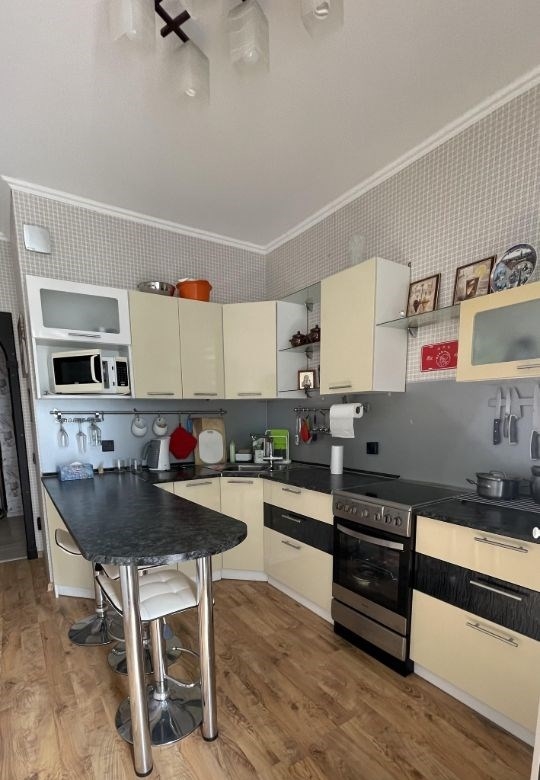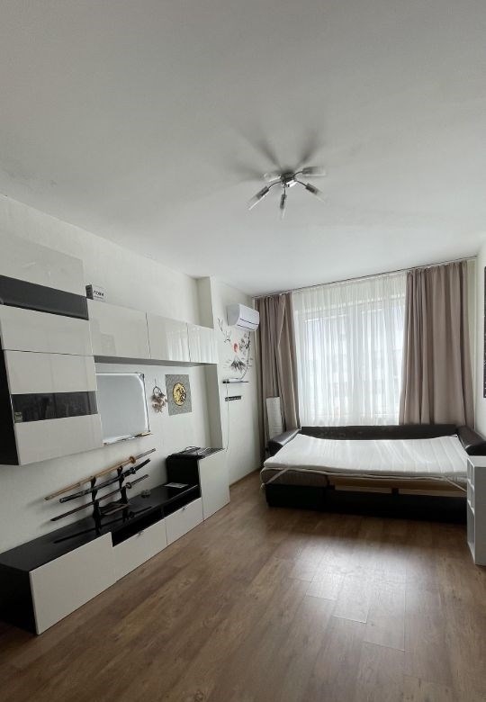 продаётся просторная светлая однокомнатная квартира на 12м этаже с удобной планировкой заезжайте и живитеквартира полностью готова к проживанию обустроена всей необходимой мебелью и техникой.оснащениекухня кухонный гарнитур, плита, микроволновая печь, холодильник, чайник, вытяжка, телевизор.санузел ванная, раковина, шкафы для хранения, стиральная машина, унитаз, вытяжка. гостинаяспальня кондиционер, телевизор, диванкровать, мебельный гарнитур.прихожая просторный шкафкупе, органайзер для обуви.балкон металлический стеллаж для хранения инструментов и вещей.в санузле установлены счётчики воды и отопления вы сможете контролировать расходы.инфраструктурагрузовой и пассажирский лифты1 минута пешком до автобусной остановки, 10 минут до трамвайнойполиклиника и магазины в домеподземный паркингбольшой двор с детской площадкой и парковкойгипермаркет и автосервис в 3 минутах на автомобиле.отличный вариант для комфортного проживания