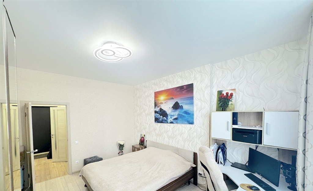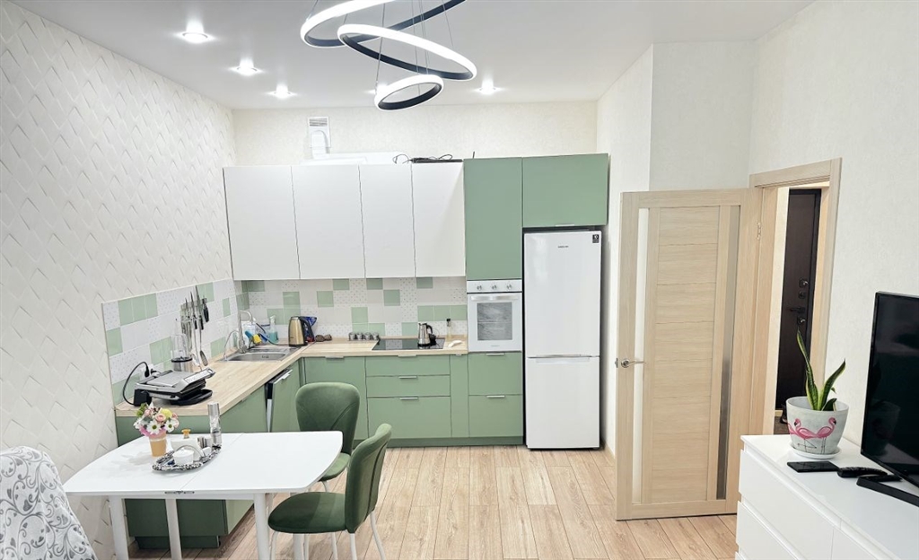 продам евродвушку в доме комфорт класса . дом имеет закрытую территорию двора. круглосуточная охрана. видеонаблюдение. удобная входная группа. во дворе имеется спортивная площадка, а также детская игровая зона.подземный паркинг. в 2022 году в квартире сделан отличный евроремонт, натяжной потолок во всей квартире, ламинат. горизонтальная разводка отопления . счетчики отопления, хвс, гвс. высота потолков 2,9 метра. большая удобная лоджия 4,5 м.кв. с организованной зоной для хранения вещей.сан. узел выполнен качественной кафельной плиткой, теплый пол.в стоимость квартиры входит большой кухонный гарнитур, обеденная зона, сантехника, индукционная плита, вытяжка, холодильник, посудомоечная машина, 2х спальная кровать с матрасом, шкафкупе для одежды, диван на кухне. один взрослый собственник, обременений нет. дополнительные вопросы можете задать по телефону. показ в удобное для вас время.