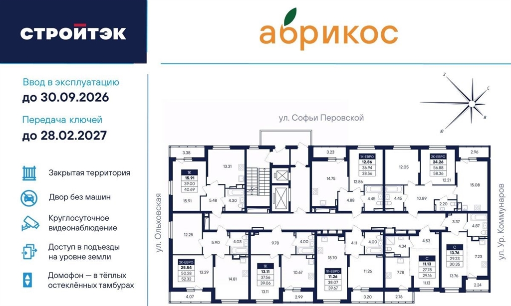 жк абрикос, расположен в районе новая сортировка по адресу ул. софьи перовской, д. 106а.познакомьтесь с абрикосом поближе. мы создали его таким, чтобы вы были довольны всем, а ваша жизнь в нём была как сам этот фрукт свежей, сочной, яркой и солнечной.районтихий микрорайон новая сортировка на северозападе екатеринбурга.20 минут пешком до парка таганская слобода15 минут на машине до кольцевой дороги, а до центра полчаса даже по пробкам10 минут на машине до тц карнавал7 школ и 11 детсадов поблизости6 продуктовых магазинов рядомдворво дворе хорошо должно быть всем детям площадки по возрасту, взрослым прогулочные дорожки. но это не всё.вместительная парковка вокруг жкконцепция двор без машин, когда можно заехать только для разгрузки и погрузкизакрытая территория с пропускной системойкруглосуточное видеонаблюдение и освещение территории в ночное времястритбольная площадкаподъездыне подъезд, а парадная. так говорят в петербурге, но и в абрикосе это слово приходит в голову. просторные холлы с витражами и достойной отделкой.доступ в подъезды на уровне земли без барьеровдомофоны в тёплых остеклённых тамбурахв каждом подъезде грузопассажирский лифтпомещения для колясок и самокатов на 1 этажеудобная навигация с номерами этажей и квартирпланировкинаш подход к проектированию называется разумные метры. это значит не только исходить из площади, но и учитывать число жильцов и их потребности.объединённые кухнигостиные для простора и общения3dмодели с вариантами обстановкиотказ от бесполезных мёртвых зонотделкав жк абрикос мы позаботились о чистовой отделке, чтобы ваш переезд прошёл быстро и не вызвал лишних хлопот.на полу в комнатах, прихожих и кухнях прочный водостойкий ламинат, в санузлах керамическая плитка, потолки натяжныемежкомнатные двери и усиленная сейфдверь на входе в квартирув санузлах установлены раковины и унитазы, а во всей квартире розетки и выключателирадиаторы с терморегуляторами и горизонтальной разводкой, двухкамерные стеклопакеты с приточными клапанами вентиляции