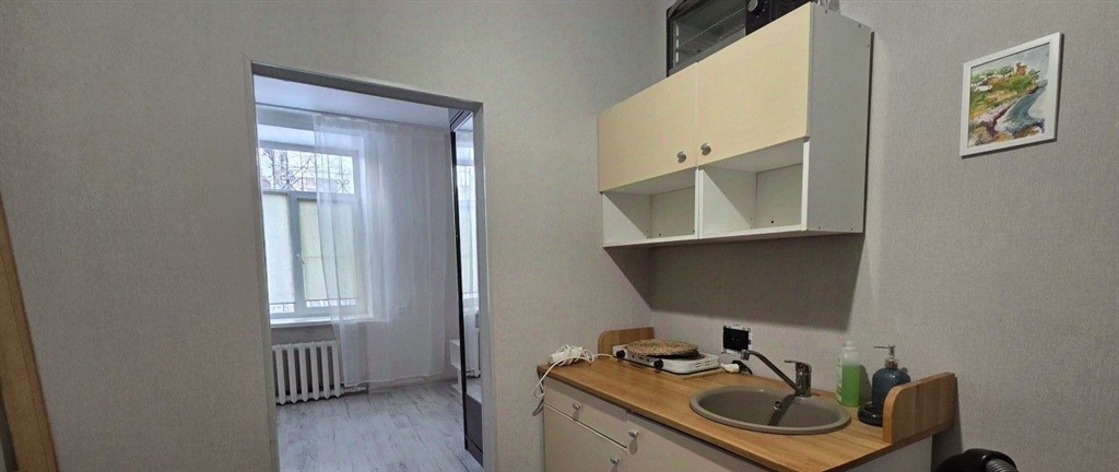 квартирастудия площадью 19.8 кв м на первом этаже 3этажного полнометражного дома. по документамкомната.высокий первый этажна уровне второго. сделан ремонт. в санузле установлена душевая кабина. обремененийопек нет, один взрослый собственник. комната освобождена, ключи на сделкеid объекта в нашей базе 6267