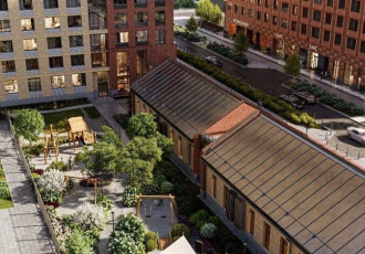 квартира 49 в подъезде 1. современные кварталы европейского типа в 5 минутах пешком от метро уралмаш. садик в глубине квартала. магазины и офисы у дома. здание с кафе и благоустроенная площадь рядом с ним. паркинг и уютный закрытый двор.