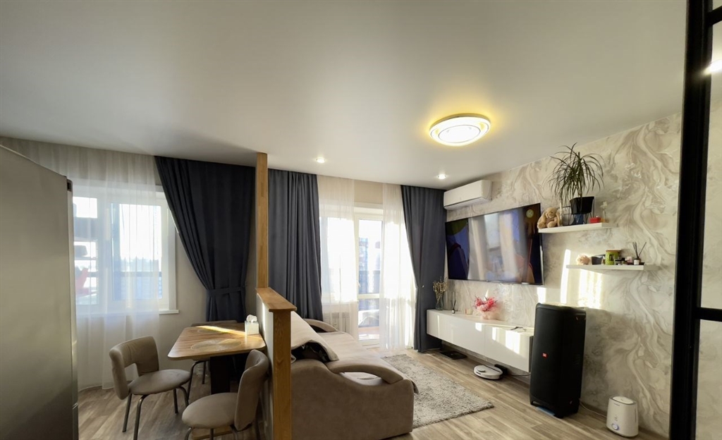 продается уютная квартирастудия с современным ремонтом 38,9 кв.м, расположенную на 10 этаже.эта светлая, просторная, квартира порадует вас прекрасным видом.основные преимущества удобное расположение дома с развитой инфраструктурой. просторная и функциональная планировка студии. панорамный вид с лоджии в сторону амура. большая лоджия 8 кв.м.о квартире при вашем желании можно изолировать обеденную зону и зону комнаты. просторная гардеробная в санузле теплый пол имеется перегородка между входной зоны и зоны отдыха спального места вся мебель и техника кроме тв, микроволновой печи, чайника, кофемашинызвоните, договоримся на просмотр и сами убедитесь во всех преимуществах. один взрослый собственник.