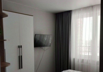 новый микрорайон. как 2ух комнатная с большой кухней и спальным местом. дворы соревнуются по красоте и разнообразии. много парковочных мест.шифонер, стенка, стиральная машина, телевизор, одеяла, подушки, посуда, тв есть. солнечная...