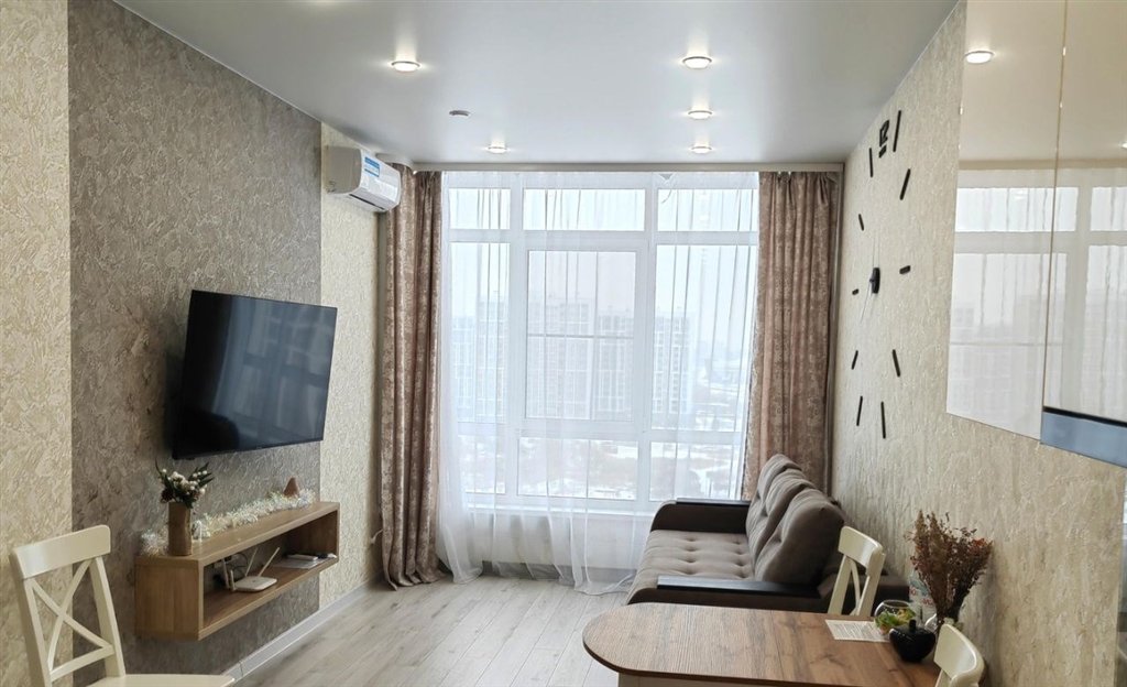 сдается уютная солнечная квартира на длительный срок. в квартире выполнен свежий евро ремонт. просторная комната оборудована двуспальной кроватью и вместительным шкафом для хранения вещей. из мебели также имеется удобный диван и обеденный стол, стулья. кухня оснащена всем необходимым холодильник, плита, микроволновая печь и чайник. в ванной комнате установлена современная сантехника и стиральная машина. совмещенный санузел оформлен в светлых тонах. в квартире есть кабельноецифровое тв и кондиционер для вашего удобства. дом монолитнокирпичный, что обеспечивает хорошую тепло и звукоизоляцию. на территории двора предусмотрена открытая парковка. квартира расположена на 11 этаже из 16, в доме есть пассажирский и грузовой лифты. курение запрещено, но можно проживать с детьми. животные не допускаются либо по предварительному согласованию.объявление от собственника.