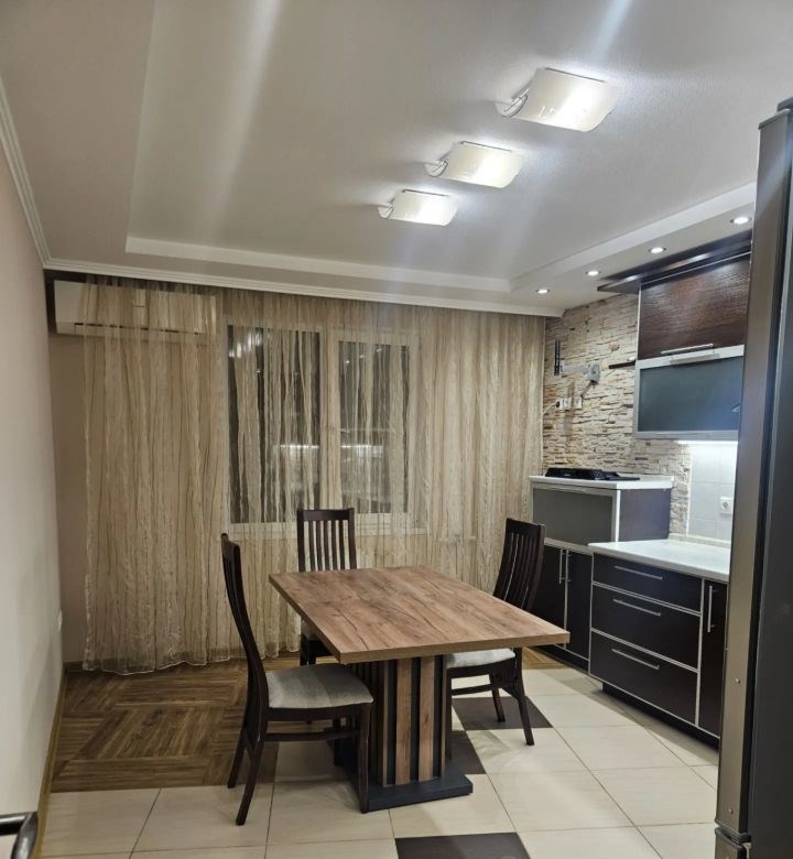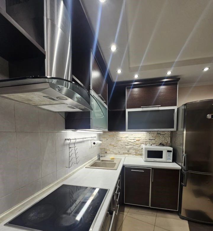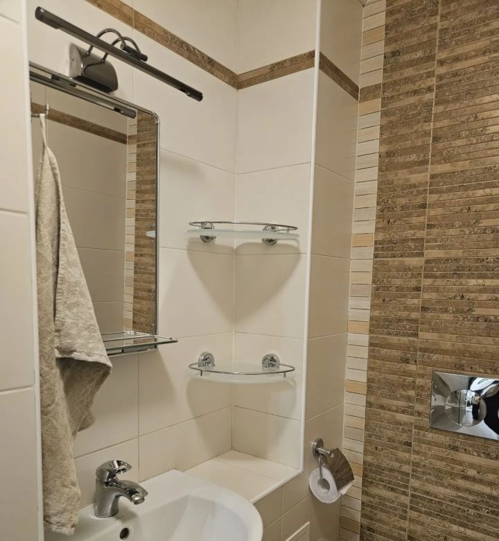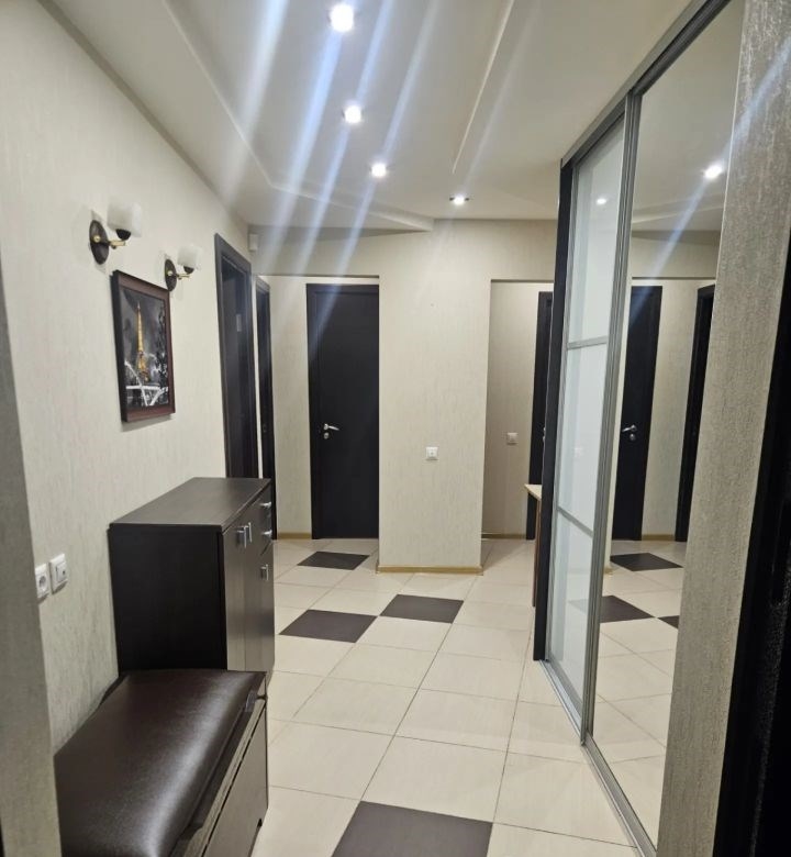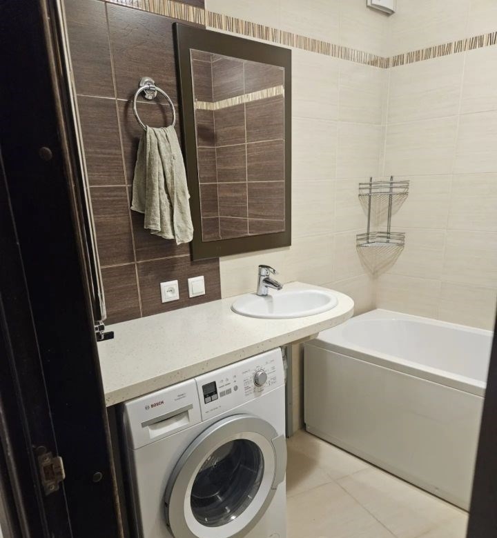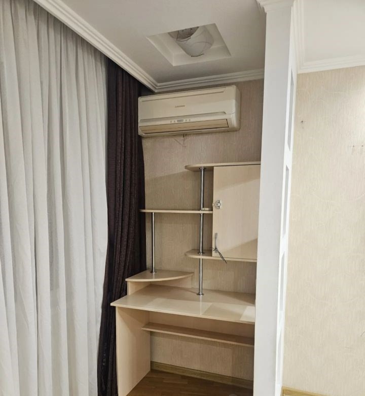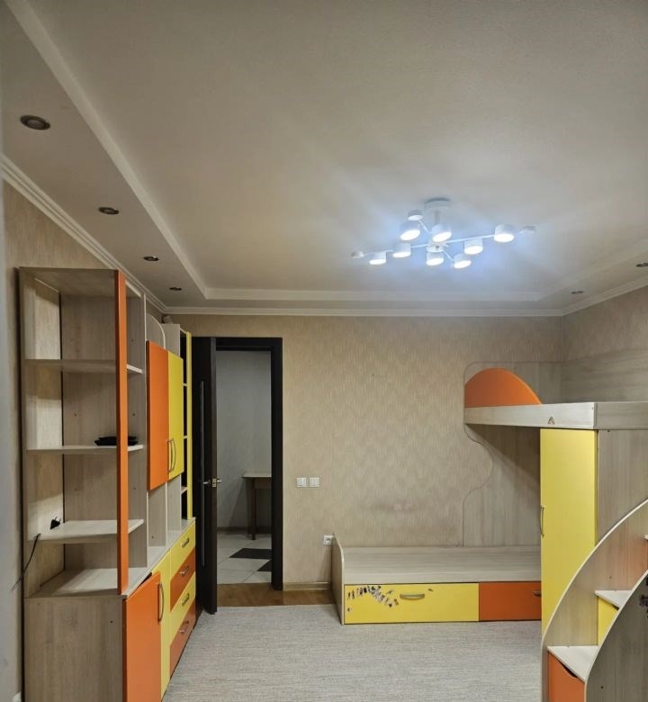 свежий косметический ремонт, частично обновлены обои, новая ванна, новые ковры. в каждой комнате сплит система. в коридоре, на кухне, в ванной и санузле тёплый пол. в коридоре большой, вместительный шкаф купе. на кухне новый стол, большой холодильник, посудомойка, микроволновке печь, комплект посуды. в спальне раскладной диван. во второй спальне двухярусная кровать, шкаф для игрушек и одежды, телевизор, рабочее место, книжный шкаф.