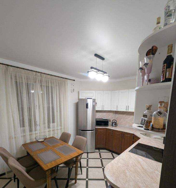 квартиру делали под себя, мебель качественная, техника известных брендов, все работает исправно. кровать двуспальная с подъёмным механизмом, диван раскладывается. есть все необходимое для проживания. при необходимости можем докупить, если чегото не будет хватать.во дворе дома игровая площадка, две парковки, мест для машин хватает.в 15 минутах ходьбы сквер изумрудный.в 10 минутах ходьбы остановка электрички очень удобно добираться до центра.по всем вопросам пишитезвоните отвечу на все вопросы.