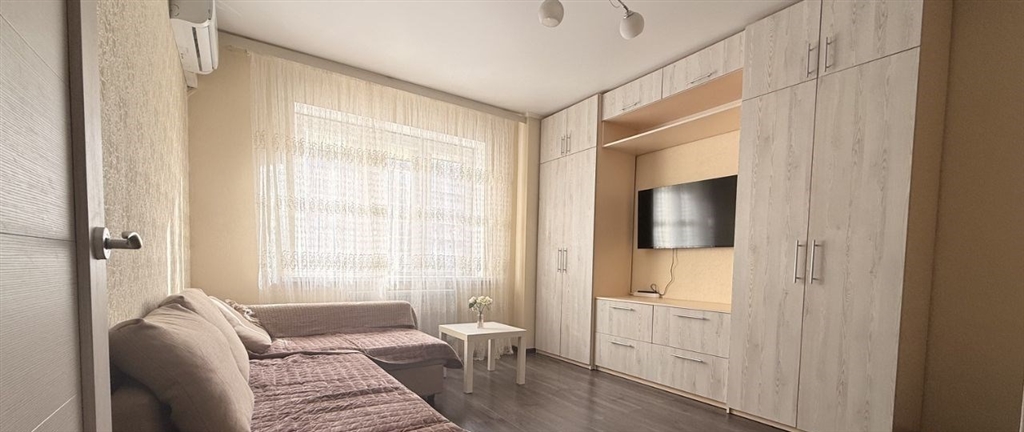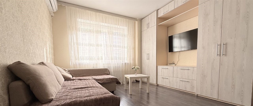 собственник на длительный срок чистая, светлая, уютная, очень теплая однокомнатная квартира с евро ремонтом, для 12 человек. расположена в одном из лучших районов г. краснодара на ул. симиренко 372фестивальный. развитая инфраструктура. рабом остановка автобусов 32 в сторону западного обхода , 65 в сторону центра в шаговой доступности 20мин ул. тургенева, ковалева, яна полуяна, герцена. рядом развязка общественного транспорта бальнеолечебница. рядом расположены магазины, рынок, фитнесцентры, салоны красоты, кафе. квартира в отличном состоянии, находится на 3 этаже. установлена сплитсистема, имеется мебель двуспальная кровать, угловой удобный диван, шкаф, зеркало с обувницей , кухонный гарнитур с вытяжкой, электроплита. необходимая бытовая техника телевизор смарт, холодильник, стиральная машина, микроволновая печь, новый электрический чайник, утюг. имеются раскладная сушка для белья и мини гладильная доска. на окнах тюли и светонепроницаемые шторы. на кухне плитка , в комнате и коридоре ламинат . интернет с телевиденьем заведён в квартиру есть роутер . застекленный балкон с ковролином на полу. также на болконе имеются жалюзи на окнах, шкаф для хранения и барный стол с 1 стулом новыйзалог за месяц обязательно курить в квартире строго запрещено. без животных