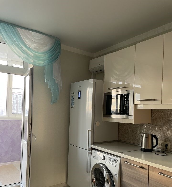 сдаётся уютная однокомнатная квартира в современном доме, построенном в 2015 году. квартира площадью 38.6 кв. м расположена на 8 этаже 19этажного дома. высокие потолки 2.8 метра создают ощущение простора. просторная кухня площадью 11.5 кв. м и жилая площадь 17.7 кв. м делают это предложение идеальным для комфортного проживания.квартира с евроремонтом, а значит, вам не придётся думать о косметическом обновлении. вся необходимая мебель уже есть как на кухне, так и в комнате. из техники в вашем распоряжении кондиционер, холодильник, посудомоечная и стиральная машины, что позволяет не беспокоиться о бытовых мелочах. ванная комната оборудована современной ванной. окна выходят на улицу, а на лоджии можно насладиться свежим воздухом.в квартире имеется диванкровать на 2 спальных места, 2 кондиционера в зале и на кухне, установлены теплые полы электрические в коридоре, ванной, на кухне и лоджии.дом в отличном состоянии с наземной парковкой, где вы всегда найдёте место для своего автомобиля. в доме есть как пассажирский, так и грузовой лифт, поэтому можно легко перевозить любые вещи. подъезд оборудован пандусом для удобства передвижения.район с развитой инфраструктурой, в шаговой доступности находятся магазины и супермаркеты. есть возможность подключить интернет под ваши требования.квартира сдаётся напрямую от собственника, без лишних комиссий.