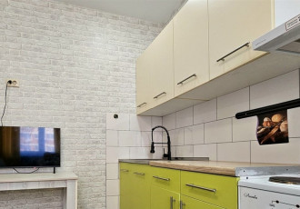 продается уютная 1 к. квартира с современным евро ремонтом. просторная кухня площадью 13 м² оснащена всей необходимой техникой, включая холодильник и микроволновую печь. в комнате установлен кондиционер и шкафы для хранения вещей. санузел...