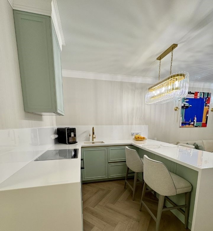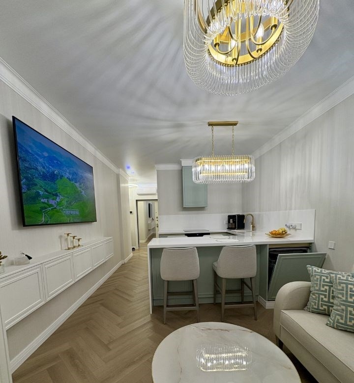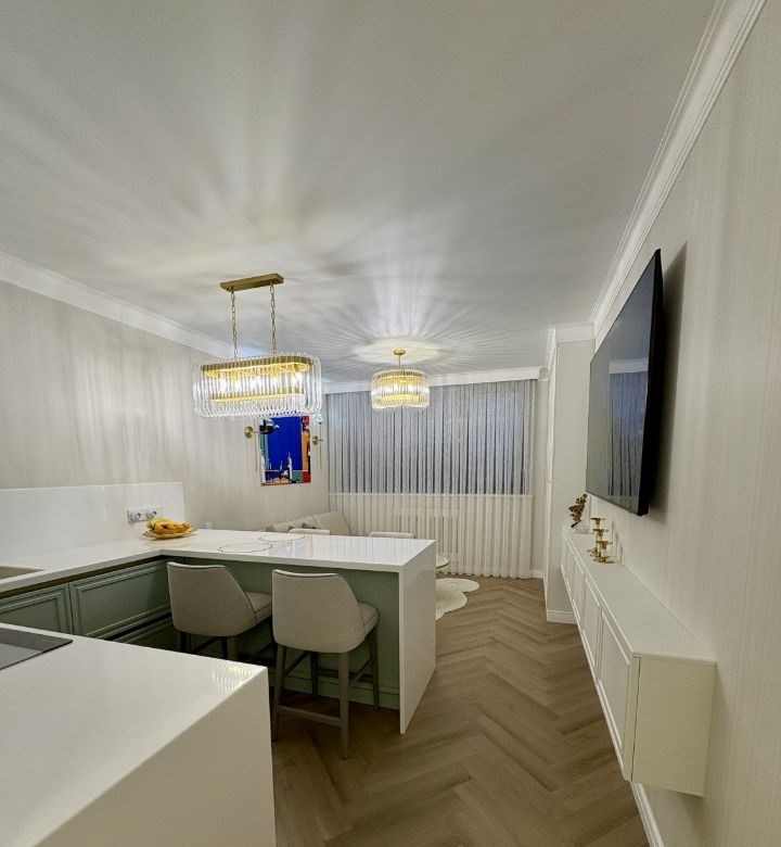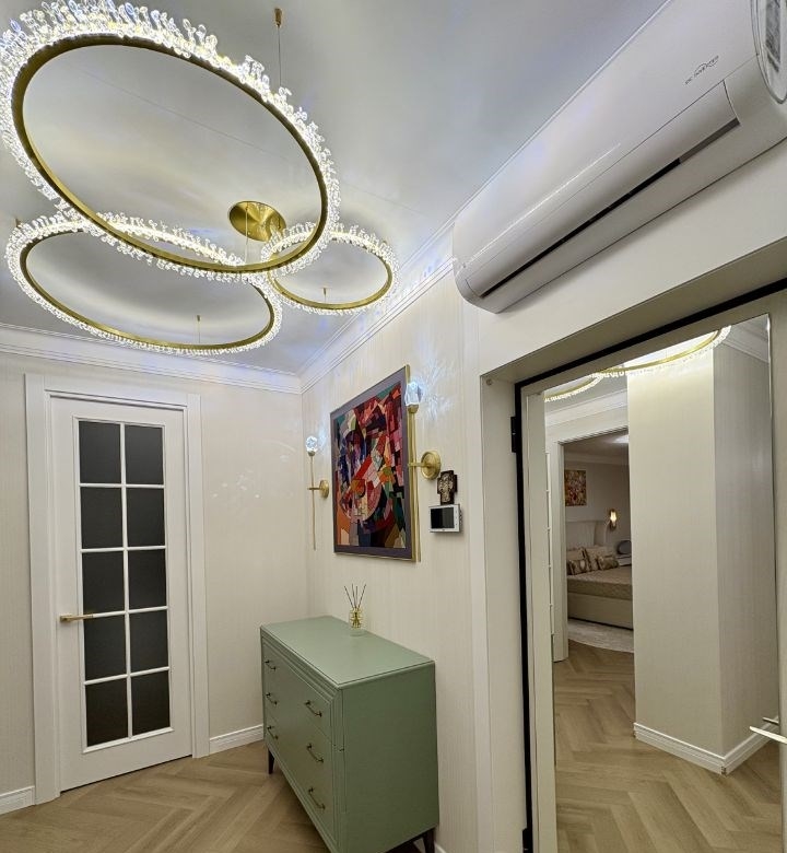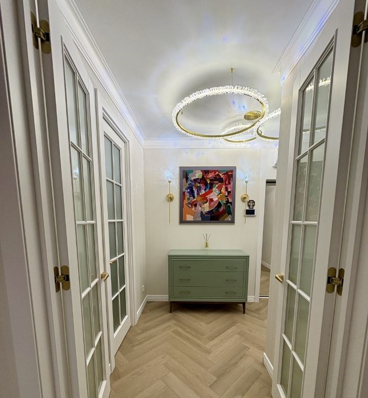 продам квартиру с дизайнерским ремонтом в жк аврораквартира состоит из спальни, кухнигостиной, ванной комнаты и гардеробной.площадь квартиры по документам 44 кв.м. по факту 48 кв.м.в квартире сделан хороший ремонт закончили ремонт 3 месяца назад новая электрическая разводка установлены хорошие автоматы, реле напряжения фильтры на холодную и горячую воду, система умягчения воды, система обратного осмоса на питьевую воду проточный водонагреватель на случай отключения горячей воды летом в ванной комнате встроенные смесители grohe, инсталляция с матовым унитазом roxen, тумба с двумя раковинами, на тумбе столешница из искусственного камня, душевой трап migliore италия кухня на заказ, столешница из искусственного камня, раковина omoikiri, барные стулья сделаны на заказ на каркасе из массива дерева. кухонная вытяжка встроенная с сенсорным управление жестами духовой шкаф с функцией свч, встроенный холодильник kuppersberg, посудомоечная машина bosch. в спальне кровать 160х200 производства caracole сша, тумбы и комод на заказ бренд kreind окно облицовано керамической плиткой испания, подоконник в спальне из искусственного камня усиленный 1800х 50 см можно сидеть пол в квартире spc ламинат 44 класс, толщина 4 мм, рисунок елочка обои андреа росси. высокие межкомнатные двери 2,4 м, эстет, скрытые петли, ручки италия гардеробная комната 4 кв м, стиральная машина с функцией пара.собственник обременений нет. куплена за наличные