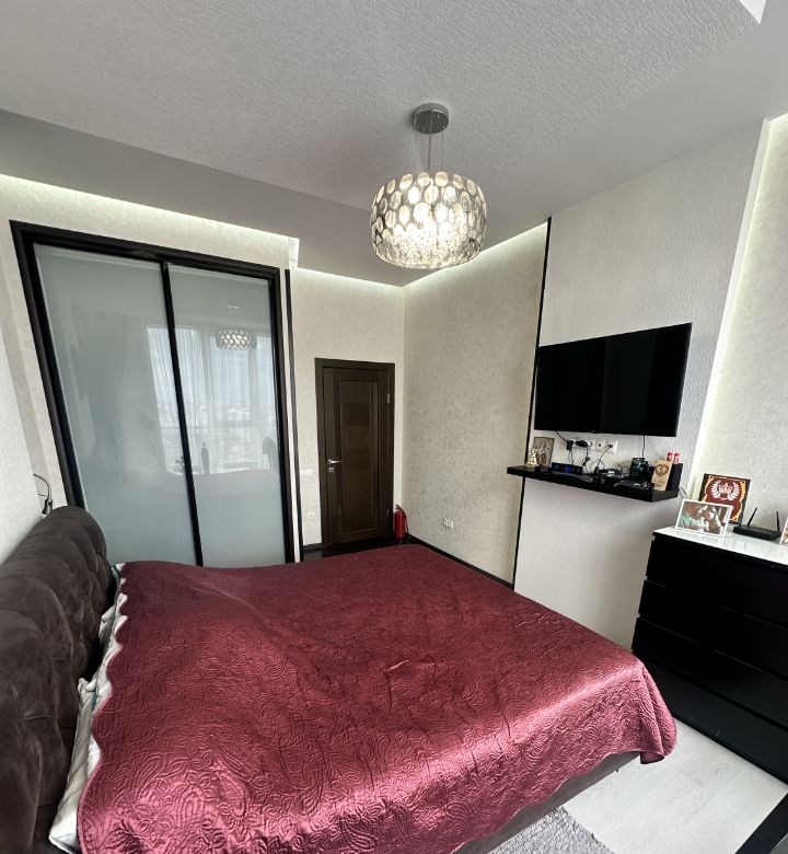 продается просторная двухкомнатная квартира с дизайнерским ремонтом на 21 этаже монолитного дома 2012 года постройки. из окон открывается потрясающий вид на город и реку. комнаты изолированные, что обеспечивает комфорт и приватность. кухня площадью 12 м² оборудована всей необходимой техникой, включая холодильник и посудомоечную машину. ванная комната совмещенная, оформлена в современном стиле с качественной сантехникой. в квартире установлены панорамные окна, которые наполняют помещение естественным светом. имеется удобная гардеробная и шкафы для хранения вещей. дом оснащен консьержем и двумя грузовыми лифтами, а также подземной парковкой за шлагбаумом во дворе. двор закрытый, есть спортивная площадка.