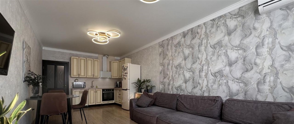продам 2х комнатную квартиру с отличным ремонтом что из себя представляет квартира большая кухнягостиная 25 метров, где есть рабочая зона и зона отдыха. так же в квартире две изолированные комнаты спальня и детская, раздельные туалет и ванная комната. так же в квартире есть несколько больших встроенных шкафов, очень гармонично встроенных в планировочное решение, где с запасом есть место для большого количества вещей. дом построен по монолитной технологии с вентилируемым фасадом, что позволяет удерживать тепло зимой и прохладу летом значительно эффективнее, чем в кирпичных или панельных домах. микрорайон развит на 100 в пешей доступности частные и муниципальные поликлиники, школы и детские сады, скверы и бульвары, спортивный комплекс и фитнесцентр, а так же все необходимые магазины и пункты выдачи заказов. звоните, организуем показ этой красотки в удобное для вас время дополнительно оплачивается комиссионное вознаграждение