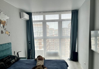 в хорошем развевающем месте, садики школы магазины есть. в 2026 трамвайная линия сейчас строят дорогу. дом на первой линии от дороги. все близко. окна панорамы выходят во двор. два кондиционера. мебель остается техника останется.продажа не...