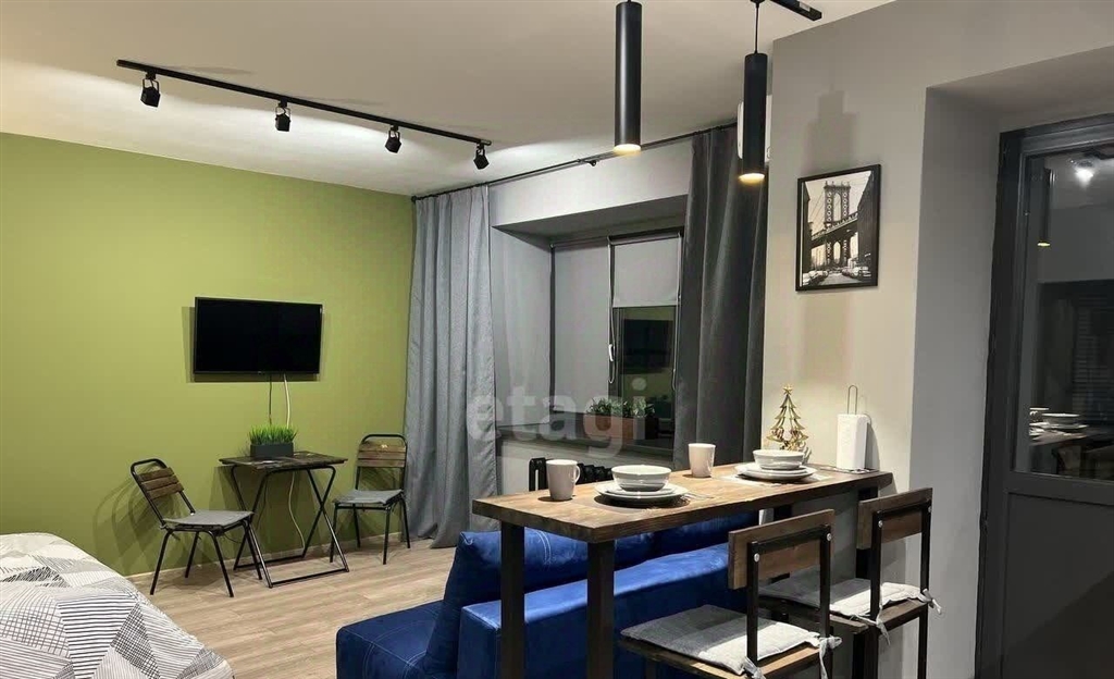 продается крупногаббаритная квртирстудия с дизайнерским ремонтомплощадью 42,7 м2 кухня 10 м2 на 410 этаже на неделина. полностью меблирована всё необходимое для комфортной жизни современная мебель, бытовая техника, оригинальные предметы декора, все остается новым хозяевм. в шаговой доступности сетевые супермаркеты и магазины, кафе, рестораны, культурные и развлекательные заведения, салоны красоты, банки, тц и мфц и многое другое, а также удобная транспортная развязка. код пользователя 91011номер в базе 10035096