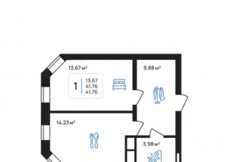 арт. 91733169. продаётся однокомнатная квартира общей площадью 41,9 м² в современном жк авторскийпланировка кухнягостиная 14,23 м² спальня 13,67 м² прихожая 9,88 м² есть место под гардеробную санузел 3,98 м²характеристики 2 этаж из 8 потолки 3...