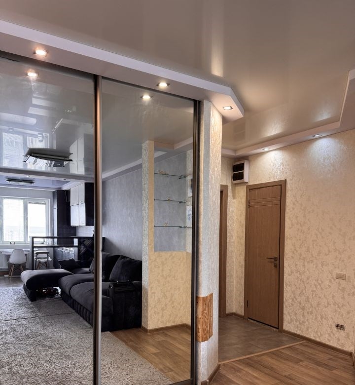 уютная квартира студия с видом на реку. можно любоваться красивыми закатами и праздниками на майдане.кухня гостиная 2 спальни для вашего комфортного проживания.теплая, уютная квартира с хорошими соседями.раздельный санузел , боллер для сезонного отключения гвс , кондиционер сплит система прохлада летом и уютное тепло в холодные дни без отопления осенью и весной . скрытие двери в обе комнаты . на кухне фильтр для питьевой воды , встроенный холодильник.организовано место под свч печь, духовой шкаф и посудомоечную машину . встроенные гардеробные в каждой комнате , в детской и прихожей с зеркалами.утепленный балкон , облицован деревом .в подьезде 2 лифта пассажирский и грузовой.мусоропровод изолирован дверью от площадки с квартирами и от лифта . на 1 этаже консьерж, камеры наблюдения в подьезде и по периметру дома умный дом . на вьезде во двор шлагбаум , место для автомобиля во дворе всегда найдется. при желании можно приобрести место на парковке под домом .в шаговой доступности сбербанк, стоматология, аптека, магнит, пятерочка, озон,вб, детские сады 2 шт, школа 60 в нашем комплексе, не надо ребенку ходить через дорогу.квартира не в ипотеке, мат капитал при покупке не использовался .реальному покупателю скидка . собственник.