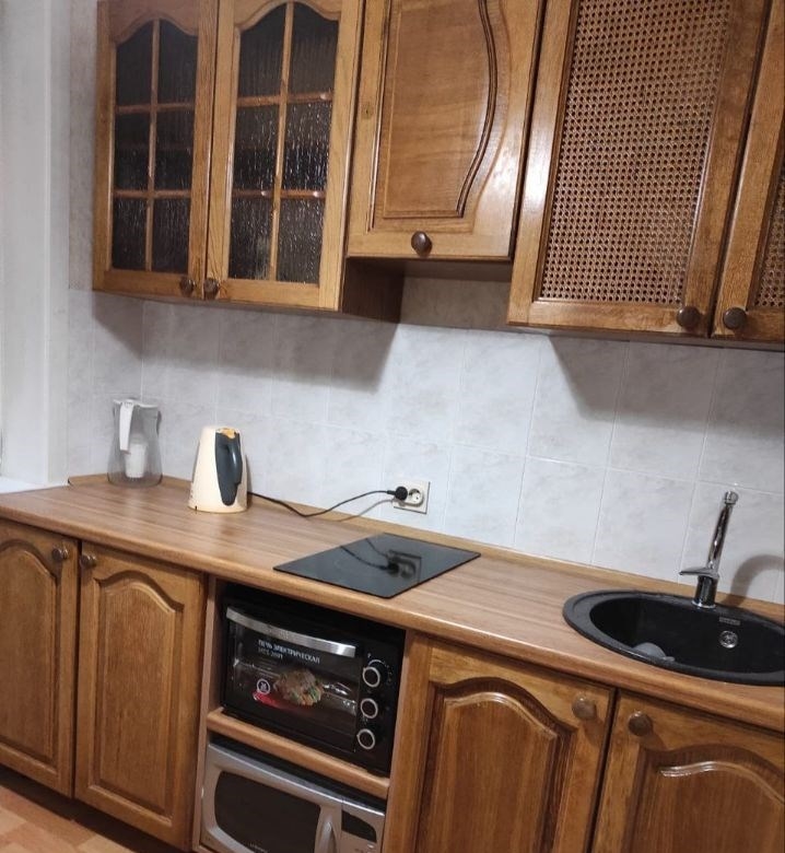 тёплая уютная квартира. новая бытовая техника. на кухне мини печь, микроволновая печь, индукционная варочная панель, холодильник, эл. чайник, кухонный гарнитур и сантехника, обеденный стол, два стула. в ванной комнате новая стиральная машинка. в комнате мягкая мебель диван с усиленной ортопедической французской раскладушкой, два кресла. имеется телевизор диагональю 47 дюймов, письменный стол и раскладной столтумба, просторный шкафкупе. во дворе парковка. окна во двор. предложение от собственника