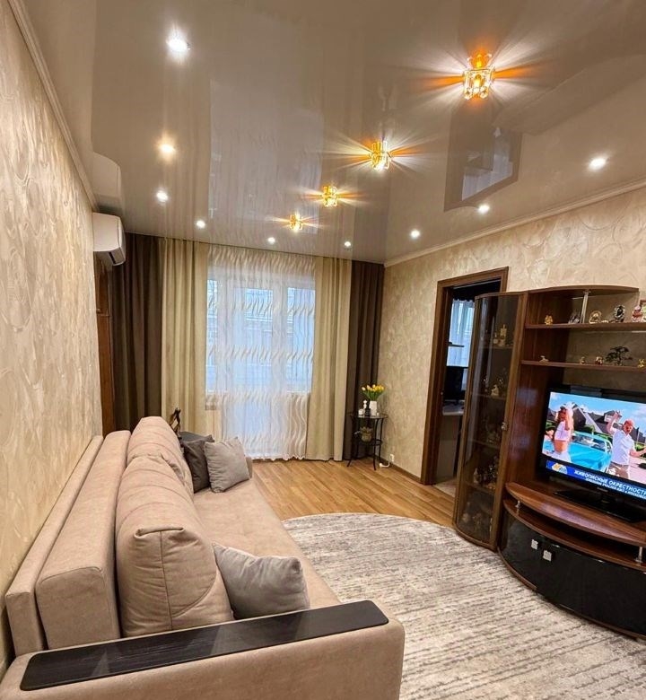 продаётся двухкомнатная квартира общей площадью 45.5 квадратных метров. квартира может похвастаться качественным евроремонтом, который добавляет ей особого шарма и уюта. новым собственникам остается в кухне кухонный гарнитур, в зале кондиционер, стенка, в спальне встроенный шкафкупе, двухспальная кровать, навесные полки, стол письменный. санузел совмещённый, что является удобным решением для современного жилья. из окон открывается приятный вид на тихий двор, где также расположена детская площадка идеальное место для отдыха и игр ваших детей. для тех, кто ценит красоту и уход за собой, приятным бонусом станут несколько студий и салонов красоты, расположенных неподалёку от дома. также рядом находится детский сад 150, что несомненно удобно для молодых семей с детьми. этот вариант идеально подойдёт тем, кто ищет спокойный район с развитой внутренней инфраструктурой и приятными условиями для жизни. приглашаем вас оценить все преимущества данной квартиры лично