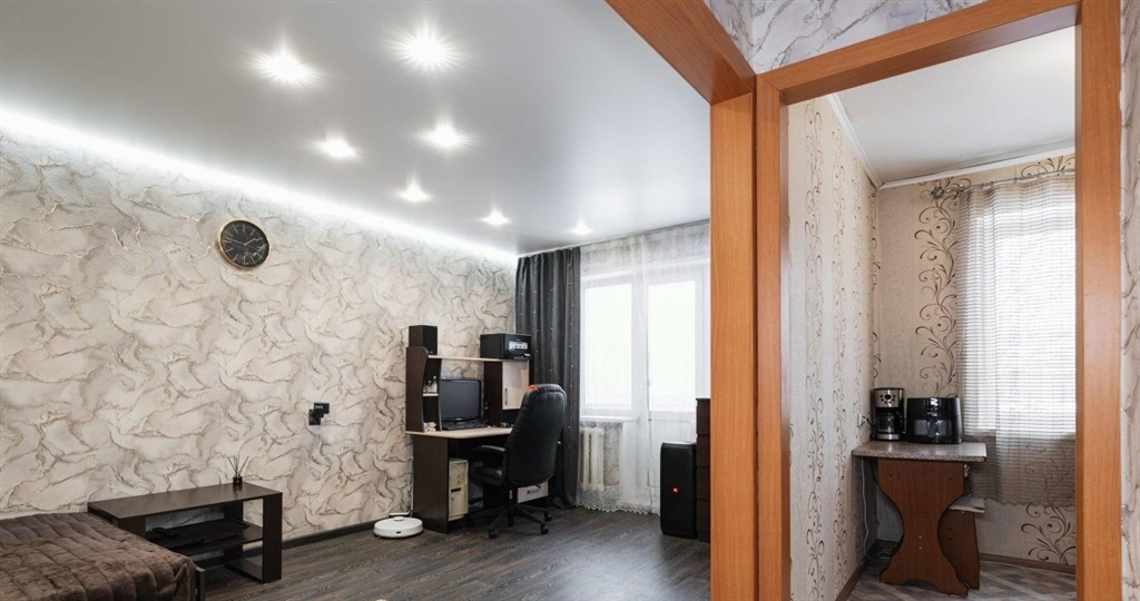 к продаже предлагается однокомнатная квартира в районе универсама. квартира очень ухоженная, уютная, расположена на удобном среднем этаже. в квартире произведен качественный ремонт заменена электропроводка, выровнены стены, установлены окна пвх, современные входная и межкомнатная дверь, натяжные потолки с точечными светильниками, напольное покрытие качественный полукоммерческий линолеум, обновлены обои. балкон остеклен и обшит пвх. санузел совмещенный, сантехника поменяна, установлены приборы учета воды на полу выложена кафельная плитка, стены обшиты пластиковыми панелями. удобное расположение дома, развитая инфраструктура в шаговой доступности остановка общественного транспорта, магазины, различные учебные заведения. просторный двор с детскими площадками, а также специально оборудованными парковочными местами. взрослый собственник. квартира подходит под любую форму расчета.приглашаем на просмотр