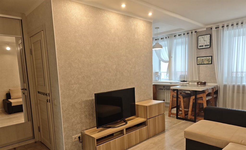 продается однокомнатная евродвушка квартира 45,6м2 в кирпичном доме в отличном состоянии. квартира состоит из коридора, кухни 19,3м2, большой комнаты 20,4м2, ванной комнаты с душевой кабиной и бойлером.также есть личный тамбур 4м2 и тамбур на 3 квартиры. в квартире нет балкона. мебель и техника частично остается.окна на две стороны, не угловая, ухоженный подъезд, хорошие и тихие соседи.дом находиться в районе с развитой инфраструктурой. в шаговой доступности дет. сады 50 и 270, школы 16 и 30, сад сибирь, гуманитарный колледж, множество магазинов, остановка общественного транспорта.взрослые собственники, без обременений, звоните покажем.