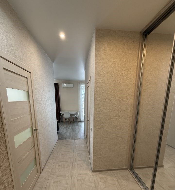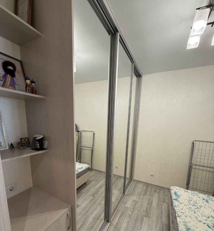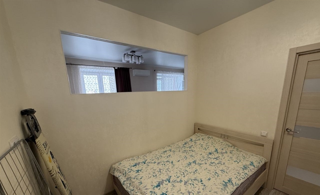 комфортная квартира для проживания одногодвух человек, нормальные соседи, состояние квартиры хорошее, остается встроенная техника и шкафы, солнечная сторона, кондиционер, рядом большой магнит, лента, арена, микрорайон очень хорошо благоустроен, на площадке есть тамбур где можно ставить велосипед.