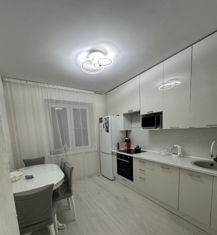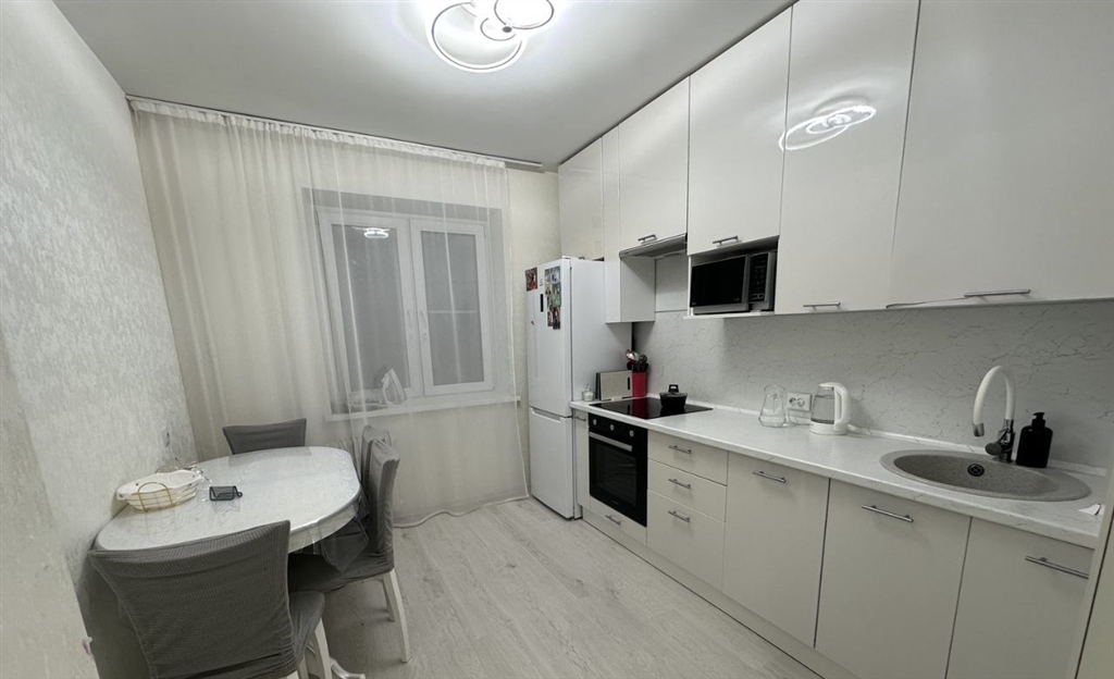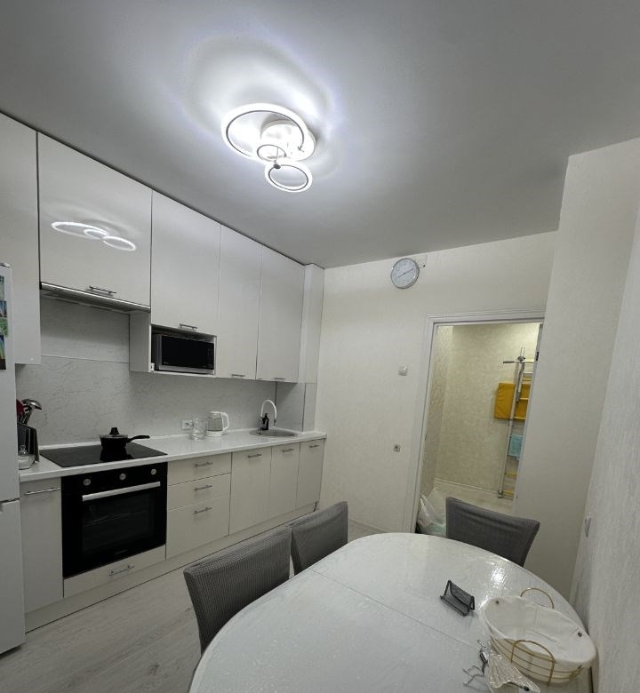 продается светлая двухкомнатная квартира 57 квадратных метра. просторная кухня со встроенным кухонным гарнитуром. в прихожей установлен встроенный шкаф купе. большая гостиная, и светлая спальня. в туалете и ванной сделан свежий ремонт. рядом с домом отдельная большая парковка для машин. рядом с домом строится большой детский сад. дом с отдельной управляющей компанией. и своей личной котельной.