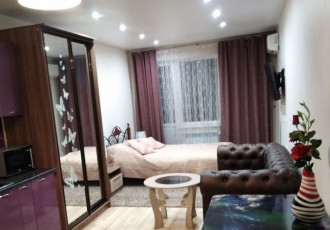 сдается 1 комнатная квартира студия в новом доме. квартира с отличным ремонтом, полностью мебелирова холодильник, телевизор, кондиционер, стиральная машина. территория дома огорожена.18000 рублейком услуги.