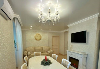 квартира в самом центре города, около тц высшая лига, кухня гостиная, встроенная техника, холодильник, кондиционер, стиральная машина, есть гардеробная, качественные пластиковые окна, без балкона, металлическая входная дверь, огорожена территория...