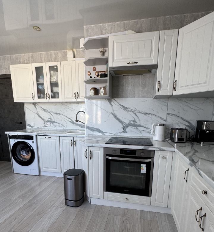 квартира в очень хорошем состоянии, изолированные комнаты 19,1 и 17,8 кв м, застекленная лоджия, большая кухня 13,5 кв м, кухонный гарнитур со встроенной техникой, санузел в плитке, водонагреватель, кондиционер, гардеробная со встроенной системой хранения, шкафы в комнатах в доме тсж2 взрослых собственника в шаговой доступности школы, детские сады, торговые центры, фитнес клубы, остановки общественного транспорта
