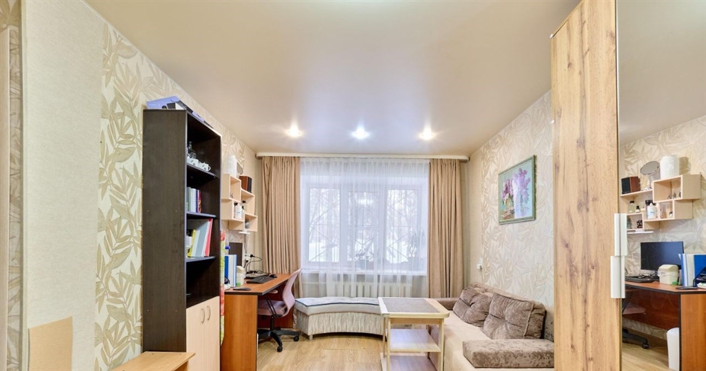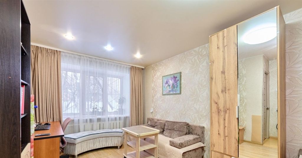 продается уютная однокомнатная квартира с евроремонтом в кирпичном доме. просторная комната оформлена в светлых тонах, что создает ощущение простора и уюта. в комнате установлены шкафы и удобный диван, а также рабочая зона с письменным столом.кухня площадью 6 м² оборудована всем необходимым газовой плитой, холодильником и встроенной мебелью. санузел раздельный, выполнен в нейтральных тонах.дом расположен на первом этаже пятиэтажного здания, что обеспечивает легкий доступ к квартире. во дворе есть детская площадка, окруженная зелеными насаждениями.