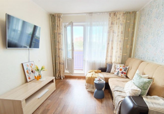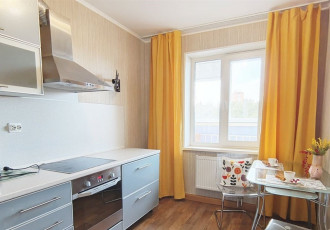 светлая уютная однушка. ремонт не свежий, но чисто и опрятно. можно заехать и жить. окна выходят на цветущие деревья. если нужно, то оставим стенку, что на фото и шкафчики на кухне.во дворе всегда есть места для парковки. вокруг очень развитая...