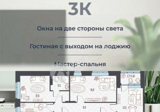 продается евротрешка с кухней гостиной с отделкой под ключ от застройщика.