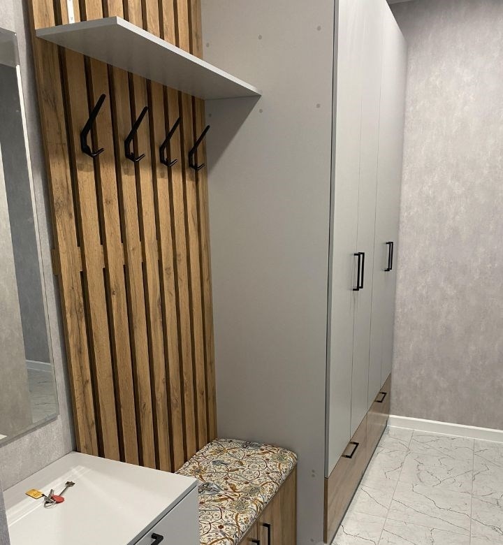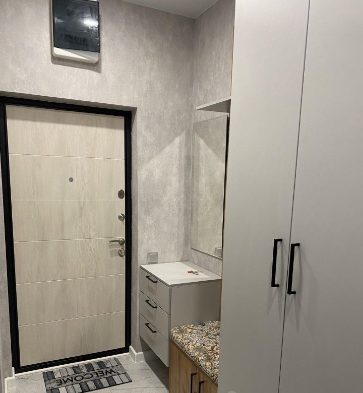 квартира новая ,свежая, уютная, в квартиру покупали абсолютно всё новое мебель, бытовую технику, хороший матрас, текстиль, предметы декора. всё подбирали специально для интерьера квартиры.в прихожей вместительный шкаф и очень удобная банкетка.кухня оборудована необходимой техникой холодильник, электрическая плита, вытяжка, микроволновка всё новое.из кухни выход на застекленный балкон. сетки на окнах стоят, окна хорошие шума нет, холод не пропускают.жилая комната разделена на две зоны функциональным и стильным стеллажом гостиная часть с раскладным диваном и спальная зона, в которой расположена двуспальная кровать и отличный матрас. есть столик, который можно использовать как для рабочей зоны, так и в качестве туалетного столика.в санузле душевая кабина, есть несколько шкафчиков для хранения бытовой химии и гигиенических принадлежностей.в комнатах много розеток.очень красивая панорама из окна. дом новый, чистый, красивый холл, есть консьерж, вокруг жк развитая инфраструктура магазины, аптеки, еда, остановки общественного транспорта, больница, поликлиника и тд.дом построен качественно, соседей не слышно, на этаже порядок.