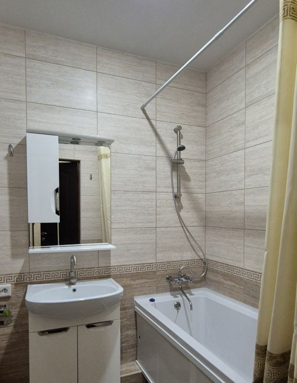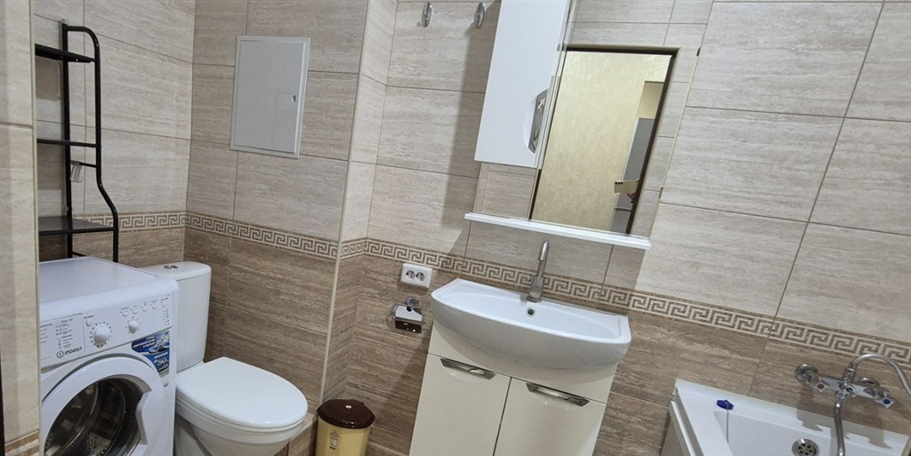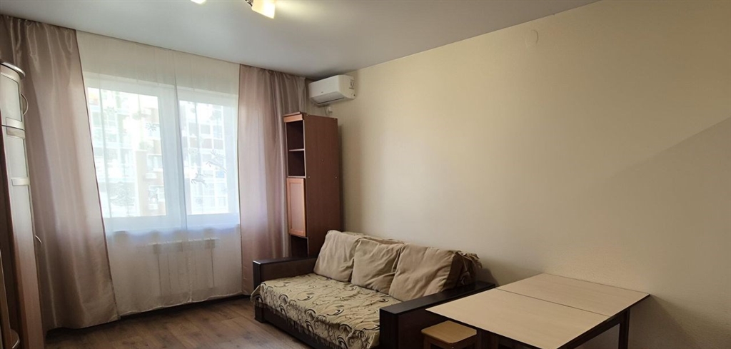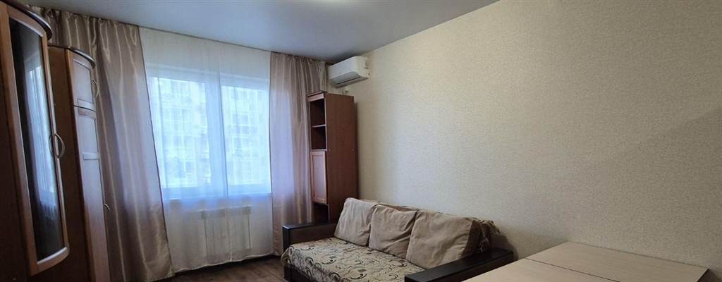 собственник. сдаю 2 комнатную квартиру студию гостиная совмещена с кухней. спальня отдельно. на длительный срок год и более. 5 этаж 14 этажного дома. дом сдан в 2017 году. состояние отличное. в квартире сделан евроремонт. здесь есть кухня, ванная, туалет, вся необходимая мебель, застекленный балкон, интернеттв 100 каналов. есть стиральная машина, холодильник, печка электрическая, вытяжка, сплит. вблизи находится большое количество магазинов и аптек. в квартире не курить. животные запрещены. оплата 30000 рубмес коммунальные. залог. сдаем семейной паре.