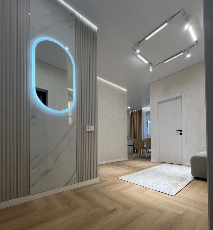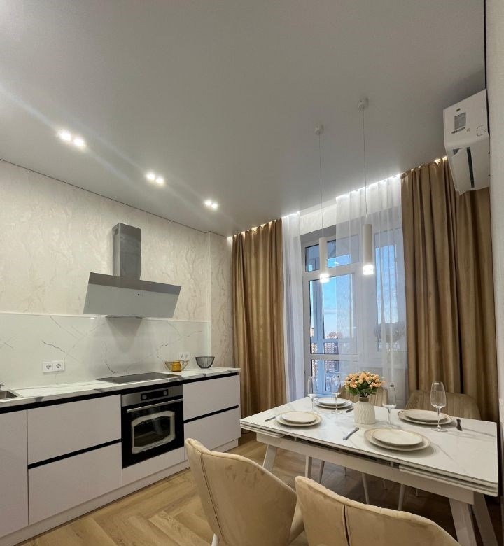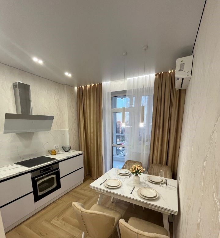 продаю новую квартиру в сданном, современном жк история. центр города.в квартире выполнен дизайнерский ремонт. остаётся всё. квартира очень крутая и стильная. в квартире надёжная электрика шнайдер. множество сценариев освещения по всей квартире. на кухни стол трансформер из керамогранита. остаётся кухонный гарнитур со встроенной техникой и доводчиками, скрытыми ручками гола и тандем боксами. всё сделали на заказ. дорогая, брендовая техника gorenje и korting, а именно варочная индукционная панель, духовой шкаф, посудомоечная машина, вытяжка, микроволновка и встроенный холодильник. межкомнатные двери с итальянской фурнитурой и ручками palini. имеется функциональная гардеробная, а так же глубокий шкаф до потолка с антресоля при входе в квартиру для хранения вещей. витражная лоджия оборудована с возможностью использования как кабинет с утеплением всех стен и системой тёплых полов. в сан узле сделана система теплый пол. качественная стильная плитка из керамогранита, инсталляция с турбо унитазом, места для хранения и многое другое. в спальне шикарная кровать с подъёмным механизмом и очень удобным матрасом. есть также тумбы, подвесной столик, и огромный встроенный шкаф купе. установленны две новейших, технологичных сплит системы. текстиль бархат. в гостинной очень уютный диван и зона под огромный тв. жилой комплекс новый, современный в спокойном и тихом районе с удобным доступом в любой конец города. свой большой двор со своей детской и спорт площадкой. большая авто парковка. имеется подземный паркинг. в доме имеется консьерж, видеонаблюдение , 2 грузовых лифта и своя газовая котельная. на первом этаже магазин магнит. детский садик и две школы в двух шагах. рядом также есть две автобусные остановки.квартира без обременения и без использования мат капитала.