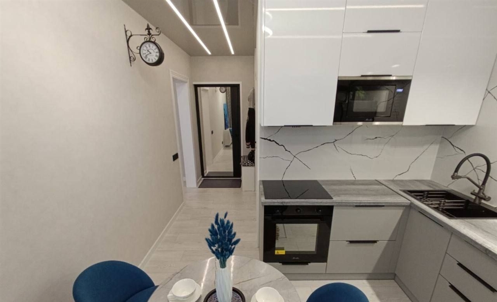 продаётся стильная, полностью готовая к проживанию квартира с авторским ремонтом и премиальными материалами никто ранее не жил. интерьер с продуманной световой концепцией несколько режимов освещения.спальня кровать 160 см с ортопедическим основанием и матрасом, инверторная сплитсистема, телевизор с кабельными каналами, портьерыблэкаут. вместительная гардеробная, куда поместится не только одежда, но и хозяйственные принадлежности.санузел система нептун защита от затоплений и автоматическое перекрытие воды, проточный водонагреватель, качественные смесители, душевая система и стиральная машина.кухня фильтр питьевой воды, глубокая нержавеющая мойка, встроенный диспенсер для моющего средства, коландер, микроволновка, духовой шкаф, варочная панель, холодильник, обеденная зона. в кухне установлен телевизор сголосовым помощником алиса.лоджия организован кабинет с письменным столом, комодом и регулируемым электрическим тёплым полом отличное рабочее место.безопасность и комфорт видеонаблюдение, умный домофон, высокоскоростной интернет с роутером. в прихожей вешалка и обувница.инфраструктура в шаговой доступности школа, 2 детских сада, почта, магазины, клиники, аптеки и кафе.вся мебель и техника остается, очень выгодное предложение, заходи и живи в квартире никто не жил, ничем не пользовался, все абсолютно новое