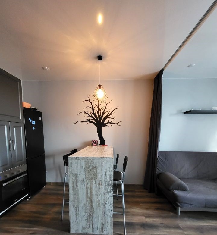 с 12 декабря, возможно посмотреть и снятьевродвушка с гардеробной комнатой. кухня с гостинной разделяются на зоны шторой с потолка. из комнаты выход на крышу, летом можно пить там чай, зимой лепить на крыше снеговика. есть всё для жизни. можно с ребёнком 4 в комнате шведская стенка. на фото нет коридора, он большой. есть индивидуальный котел, температура регулируется.счётчики оплачивает арендатор.