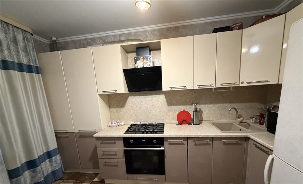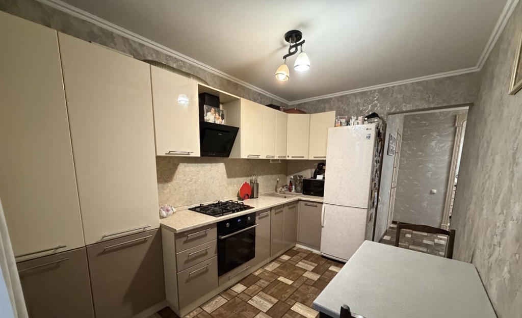 продается 1комнатная квартира с индивидуальным отоплением. квартира находится на 5 этаже кирпичного дома. общая площадь вместе с балконом 46 кв.метров. кухня площадью 9,5 кв. метра, комната14,4 кв.м, санузел 3.1 кв.м, прихожая14 кв.м, балкон5кв.м. в квартире сделан ремонт полностью, встроенная кухня, встроенные шкафы купе. квартира не угловая. в шаговой доступности находятся продуктовые магазины. во дворе и за домом находятся детские площадки и детский сад. вблизи также расположена общеобразовательная школа. собственник один.