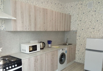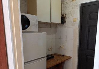 квартира в хорошем состоянии. в комнате есть стенка, диван, компьютерный стол. в кухне кухонная мебель, холодильник, микроволновка. в прихожей платяной шкаф. есть пылесос, гладильная доска, стиральная машина. рядом с домом аптека, продуктовые...