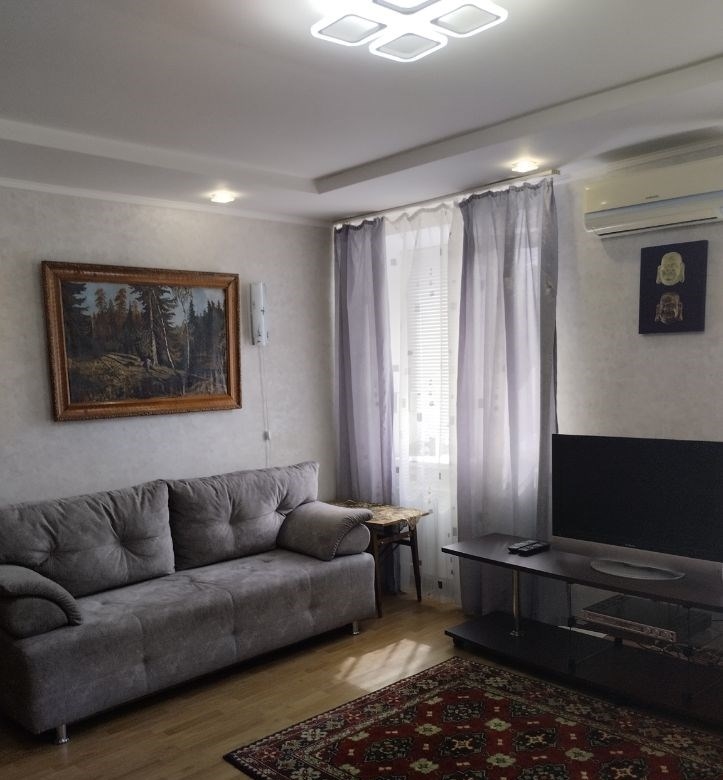 квартира в хорошем состоянии.теплая,светлая, тихая. солнечная сторона.в комнате два окна, по фасадной стене.гардеробная комната. вся техника в наличии. кондиционер, холодильник, микроволновка, чайник, стир.машина, пылесос, телевизор, утюггазовая плита, вода холодная и горячая.