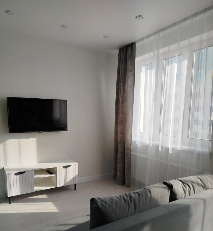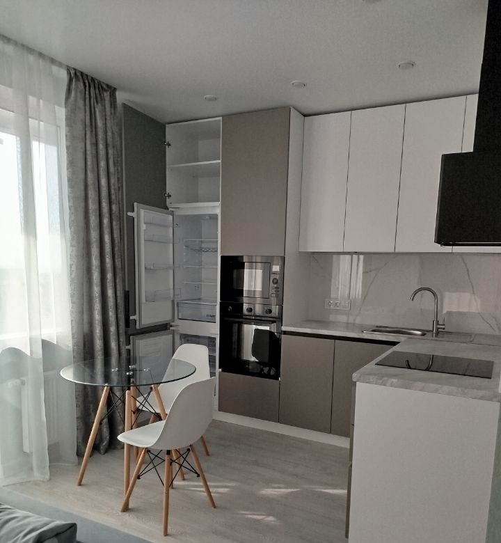 сдается на длительный срок квартира студия с отдельно выделенной спальной зоной. новый дом жк логика. очень светлая, уютная, вся мебель новая. в квартире двуспальная кровать, большие шкафы, раскладной двухместный диван, телевизор, интернет, утюг, гладильная доска, встроенный холодильник, микроволновка, духовой шкаф, посуда для приготовления еды и столовые предметы, вытяжка, индукционная плита, стиральная машина автомат, кондиционер.отличное месторасположение, во дворе супермаркеты пятерочка, магнит, фабрика качества, а также пара аптек, мк идк детская. в шаговой доступности рынок антошка, центральный автовокзал, тц русь на волге, образовательное учреждение аэрокосмический университет.