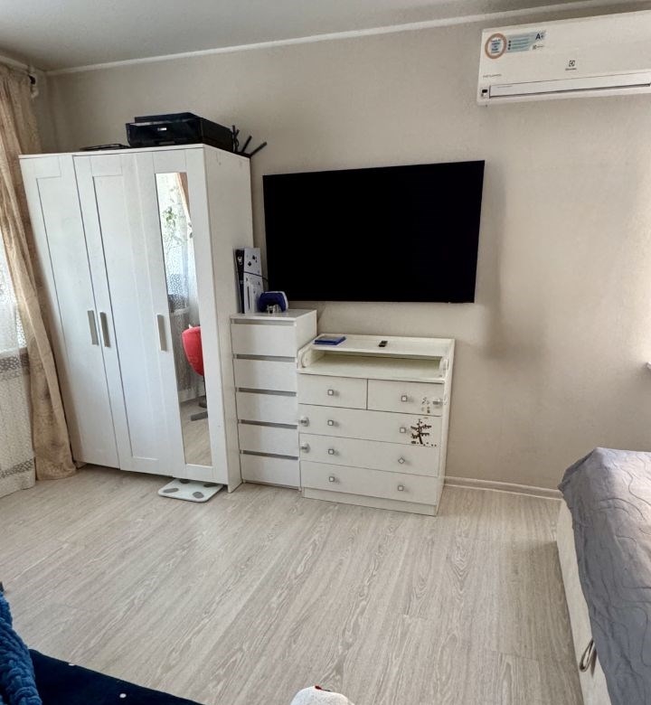 уютная однокомнатная квартира с косметическим ремонтом, к которому приложили свои руки ребенок и лапки кот поэтому его можно обновить. окна выходят во двор обеспечивая тишину и спокойствие. сразу за домом большой и ухоженный сквер с детскими площадками, спортивный комплекс. из техники установлен кондиционер, немецкая газовая колонка bosch